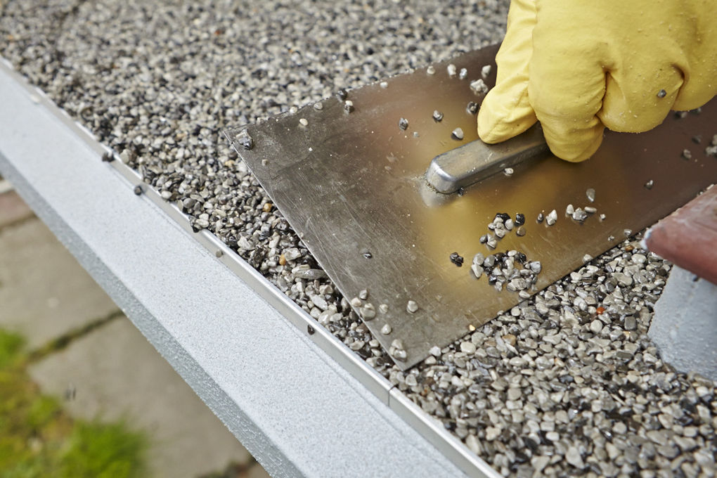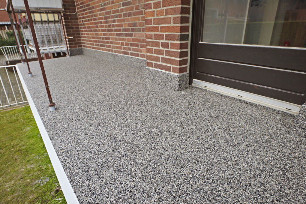 Ausbrüche und Fehlstellen wurden mit diesen Produkten ausgebessert und die ganze Fläche mit der HADALAN® EBG 13E – Membrane 2 mm – ausgeglichen. Anschließend haben sich die Bauherren für verschiedene Oberböden entschieden. Vom Chips-Boden bis zum Natursteinteppich wurden hier, je nach Geschmack, hochwertige Produkte eingesetzt. Für die Langlebigkeit ist nun gesorgt.